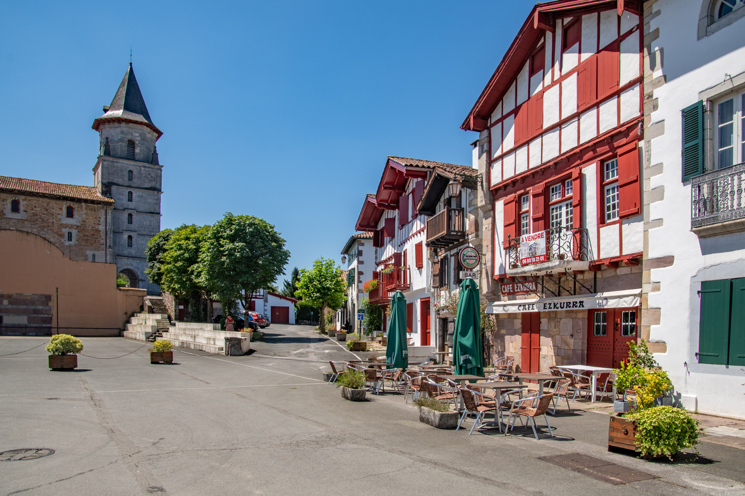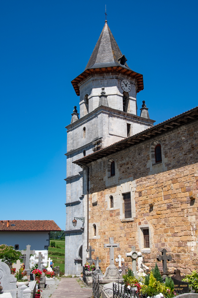 Centraal in het dorp staat de Église Notre-Dame-de-l’Assomption. Deze kerk dateert uit de 13e eeuw, maar werd later verbouwd. Het interieur is typisch voor Baskische kerken, met houten galerijen aan drie zijden. Mannen zaten traditioneel op de verdiepingen, vrouwen en kinderen beneden. De kerk heeft een fraai caissonplafond, een verguld retabel en kleurrijk glas-in-lood. Tegenover de kerk ligt het fronton, een open veld waar het traditionele pelotaspel wordt gespeeld.