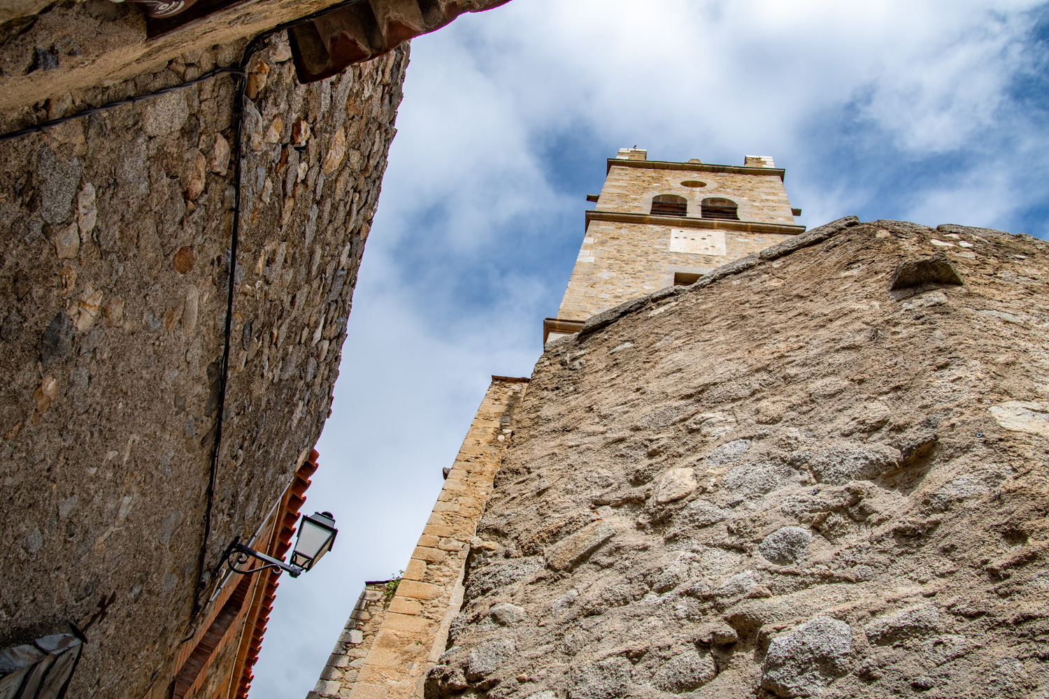 Het dorp bestaat uit één hoofdweg klimt in bochten omhoog naar de kerk; smalle zijstraten takken af naar kleine pleinen en uitkijkpunten. Veel gevels hebben traditionele houten details. Her en der zijn nog sporen zichtbaar van de vroegere ommuring, poorten en huis-op-huis bouw die de kern beschermden tegen weer en aanvallen. Door de compacte aanleg is het dorp makkelijk te voet te ontdekken. De straten van en naar de kerk zijn aangelegd met grote ronde stenen waardoor dit deel van het dorp, niet of slecht bereikbaar is voor mensen die slecht ter been zijn.