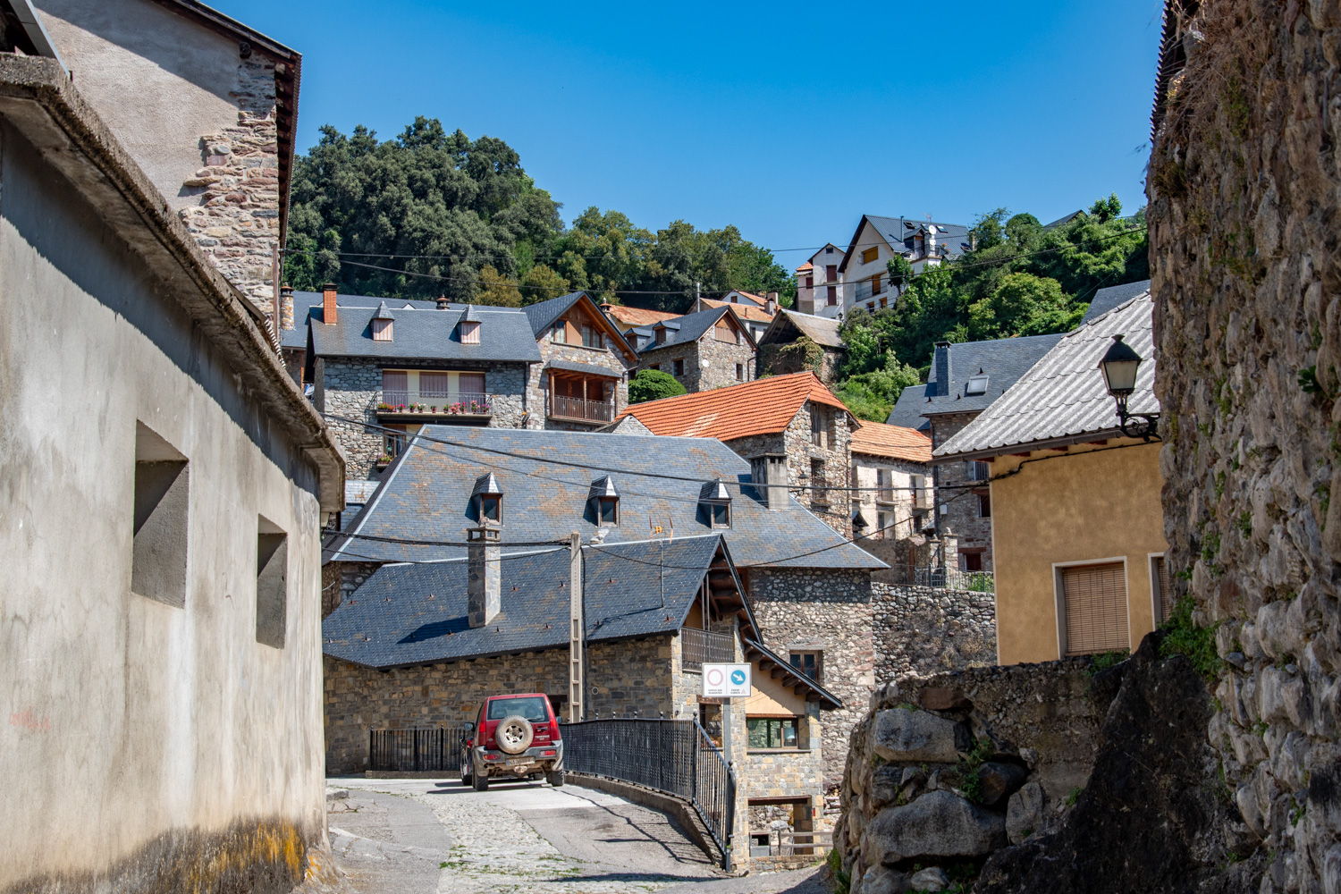 De kern van het dorp wordt gevormd door de romaanse kerk van San Juan Bautista, oorspronkelijk een abdijkerk uit de 12e eeuw en uitgebreid in de 16e eeuw. Aan de kerk grenst een voormalig abtenhuis dat tegenwoordig dienstdoet als museum voor het lokale erfgoed en het dagelijks leven in de vallei. Het dorp kenmerkt zich door keienstraatjes, natuurstenen huizen met leistenen daken en houten luiken. Het dorp is door de eeuwen heen niet heel veel veranderd, waardoor een wandeling door het dorp voelt als een reis terug in de tijd. Een groot deel van de smalle straatjes in het dorp zijn zo smal dat er geen auto’s doorheen kunnen, wat dit beeld verder versterkt. Het dorp heeft geen winkels en slecht een restaurant El Regancho by La Roulette.
